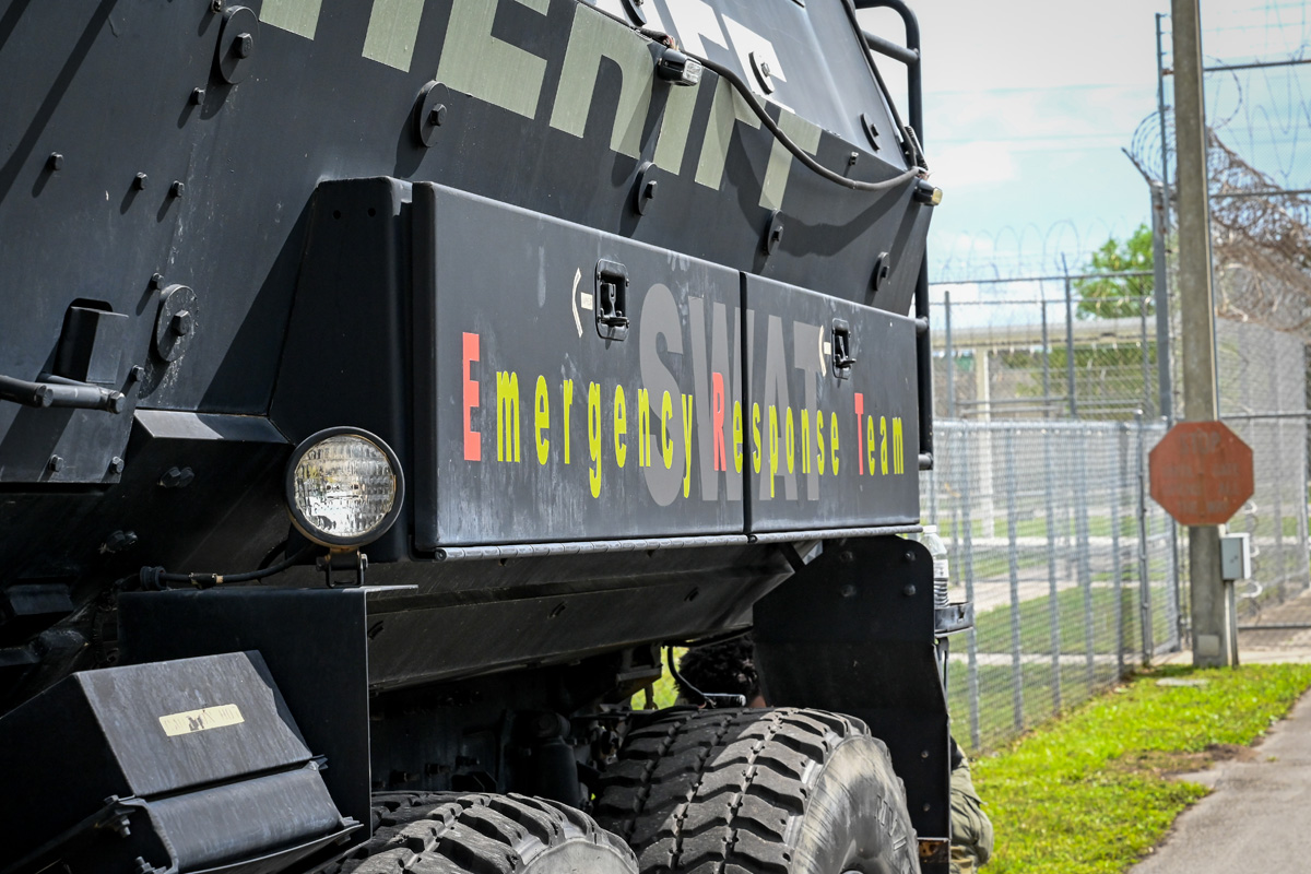 Our Emergency Response Team consists of highly-trained corrections deputies who are available to respond rapidly to any situation in our jail at any time. They are tasked with responding to critical incidents such as riots, cell extractions, mass searches, or fights in a correctional setting.