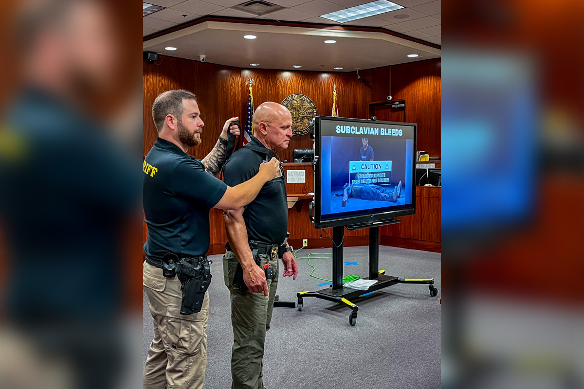 Our training includes the use of Brazilian Jiu Jitsu techniques to safely detain subjects, shooting and moving drills such as shooting through car windshields and moving to cover, and joint training exercises with other agencies such as for active shooter preparation.